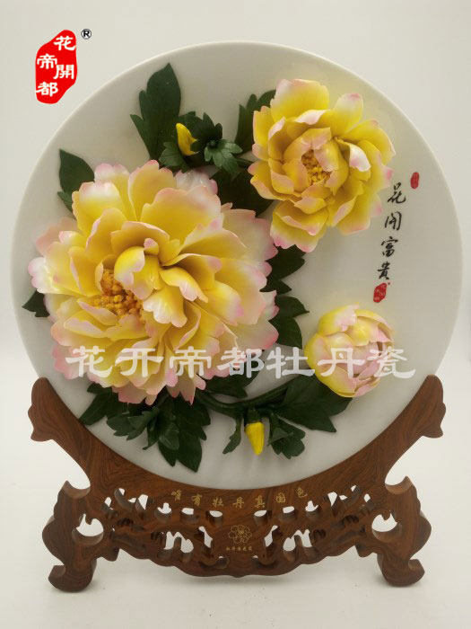 產品系列主要包括:牡丹瓷花盤、牡丹瓷屏風、牡丹瓷盆景、牡丹瓷壁掛和牡丹瓷鼎,形式多種多樣!每一件作品都是藝術的結晶,花、枝、葉均是手工捏制,造型逼真生動。
